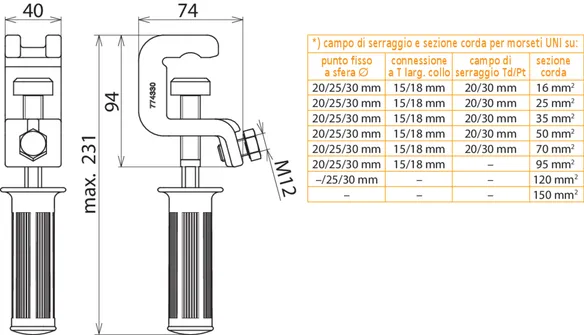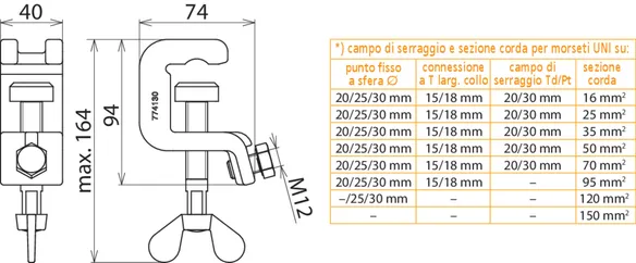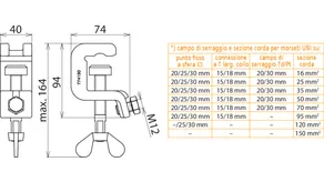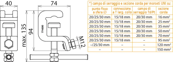 | Per sezione corda Cu | 16 ... 150 mm2 |