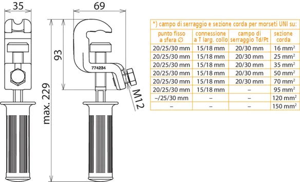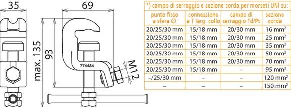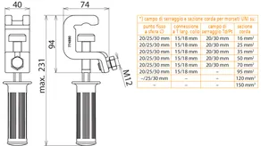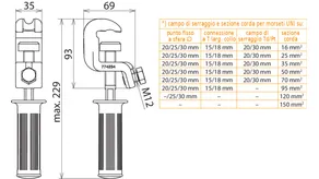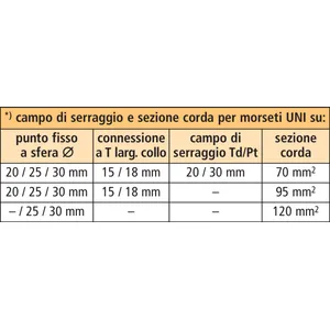 | *) vedi tabella campo di serraggio e sezione corda per pinze universali | |