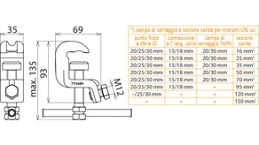 | Per sezione corda Cu | 16 ... 95 mm2 |