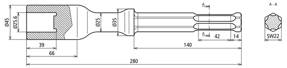 | Innesto | innesto esagonale, apertura 22 x 108 mm |