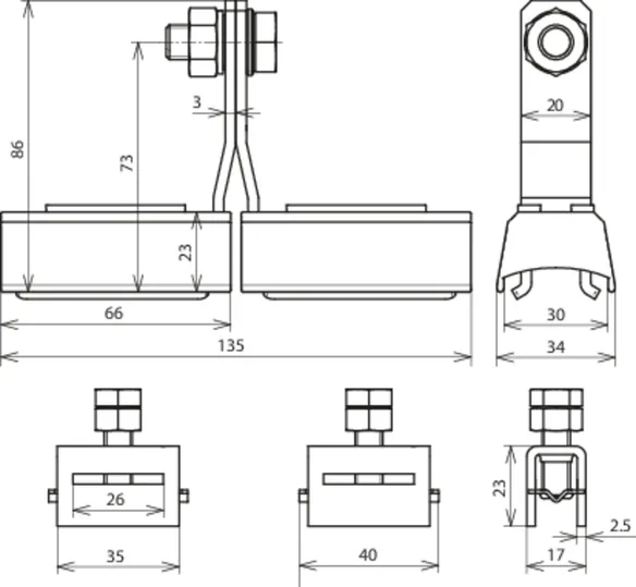 | Corrente impulsiva di fulmine (10/350 µs) Cu Ø12-27 mm (3/4") (Iimp ) | 20 kA |