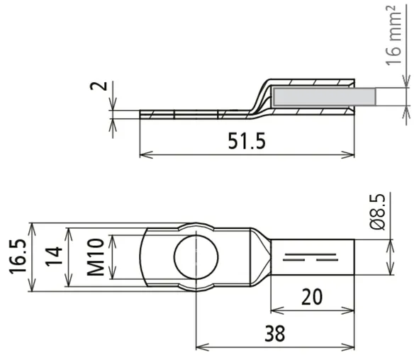 Capocorda a crimpare DIN 46235 16 mm² M10