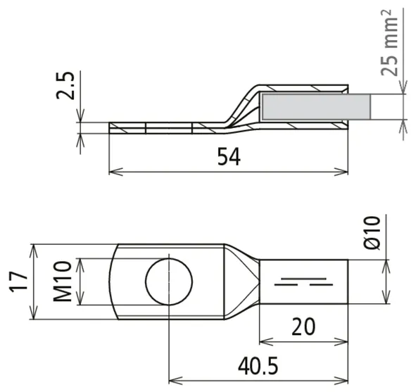Capocorda a crimpare DIN 46235 25 mm² M10