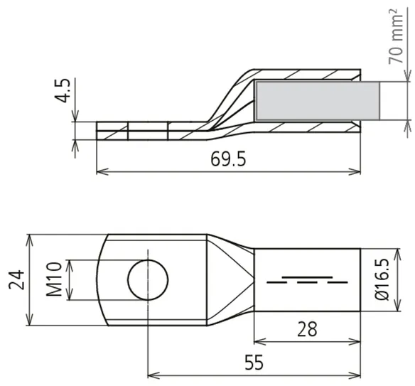 Capocorda a crimpare DIN 46235 70 mm² M10