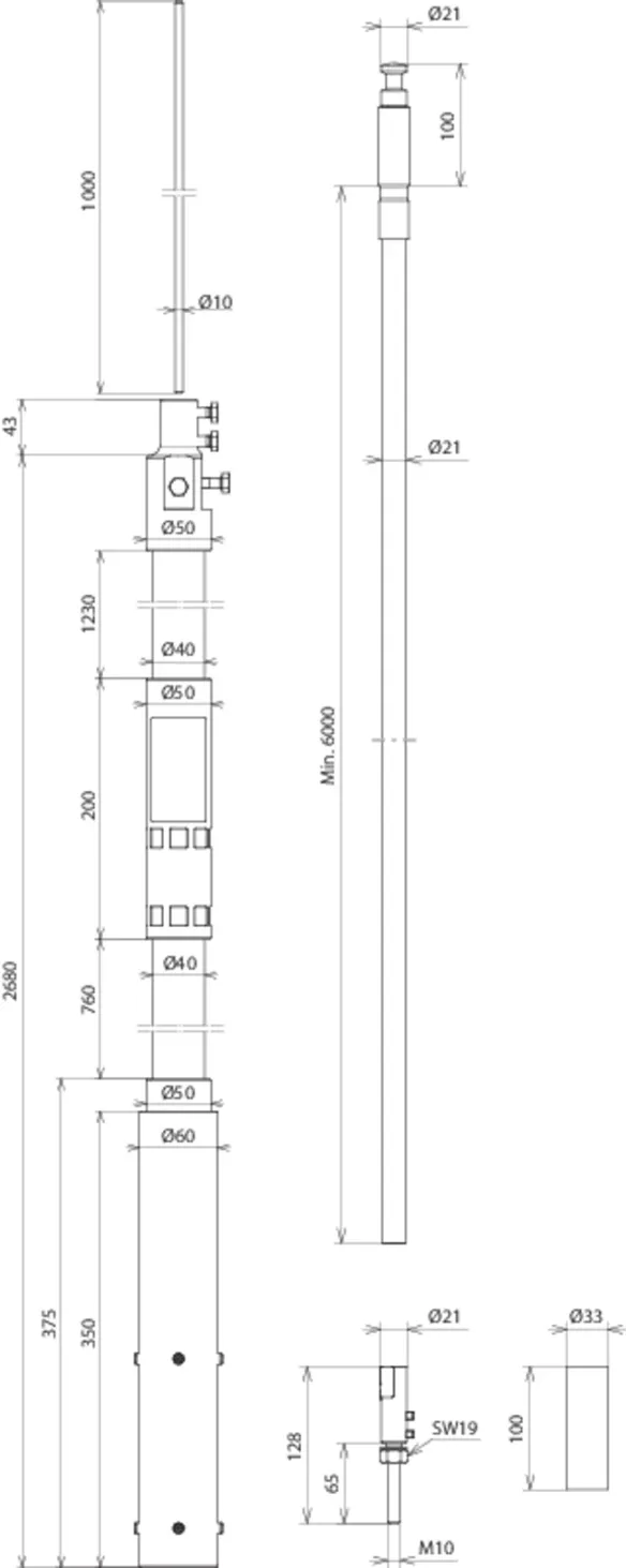 Conduttura HVI light plus in tubo portante 2680 mm con punta di captazione 1000 mm Impianto di captazione isolato ad es. da impianti rice-trasmittenti (antenne paraboliche, antenne terrestri). Versione esteticamente modificata grazie alla posa della conduttura HVI light plus all’interno del tubo portante Calata isolata resistente all’alta tensione, per il rispetto della distanza di separazione dalle parti elettricamente conduttive secondo la norma DIN EN 62305-3 (VDE 0185-305-3) Distanza di separazione equivalente s =< 60 cm (in aria) o s =< 120 cm (in materiale di muratura). I tubi portanti sono dimensionati conformi all’Eurocode 1 (DIN EN 1991-1-4 + DIN EN 1991-1-4/NA). Conduttura HVI light plus posata nel tubo portante, con terminale speciale situato internamente e punta di captazione Ø 10 mm lunghezza 1000 mm.