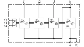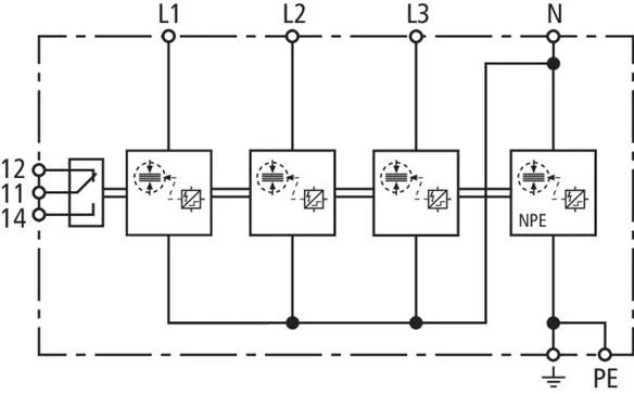 | Corrente impulsiva di fulmine (10/350) [L-N]/[N-PE] (Iimp ) | 12,5 / 50 kA |