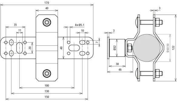 | Fissaggio | [8x] Ø5,1 / [4x] 7 x 10 / [2x] 11 x 20 mm |