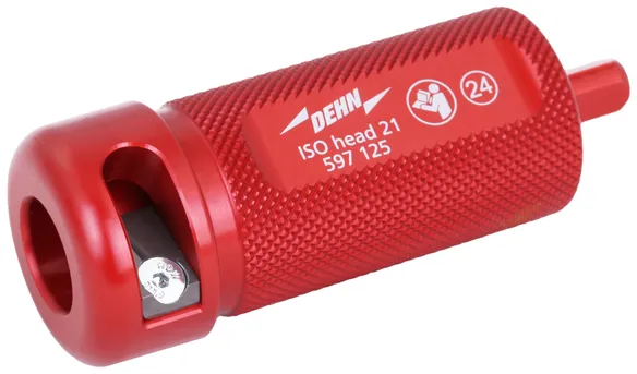 HVI strip 20 è uno strumento per togliere il rivestimento semiconduttore e contemporaneamente l’isolamento PE della conduttura HVI e HVI light plus, con un diametro esterno di 20 mm. La lunghezza di spellatura è regolabile secondo incrementi (punti di innesto) di 0,2 mm tramite la rotella di regolazione integrata nel manico. Versione completa con manico e testa di taglio.